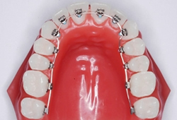 ベーシックな表側の矯正装置(メタルブラケット)