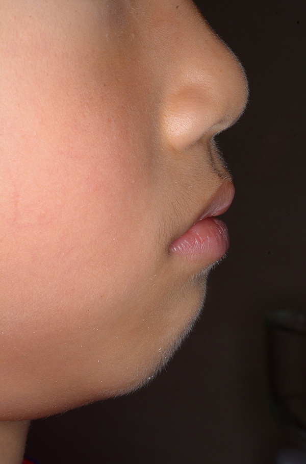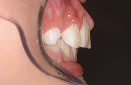 | セファロ所見 | 上下顎骨は調和のとれた位置関係を示していたが、頭蓋に対して両顎共に前方に位置していた。上下顎前歯は唇側傾斜していた。 |