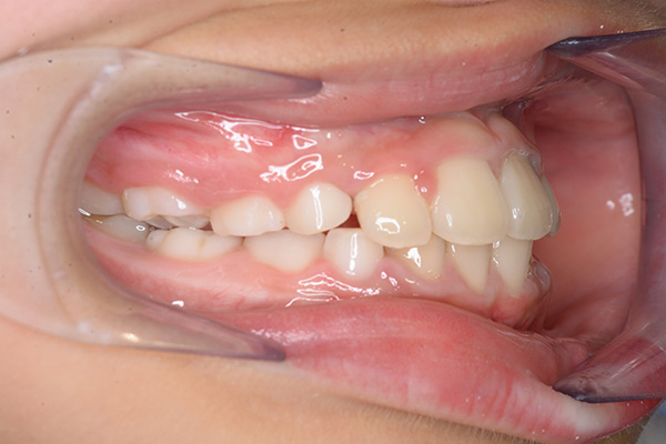 上顎前歯のアライメントを行ったことで、ロッキングされていた上顎歯槽基底骨の成長に良い影響が生じており、側方歯群の交換も順調に進んでいる症例である。2期治療は相談の上、希望があれば行うこととしている。 |