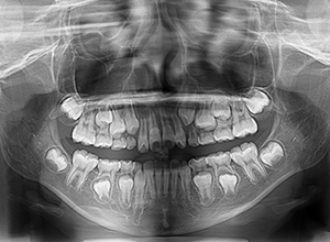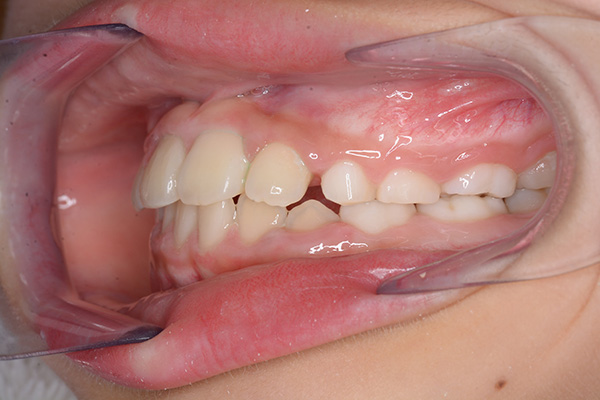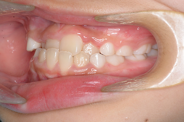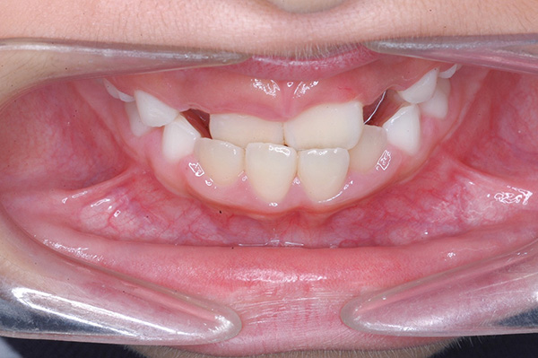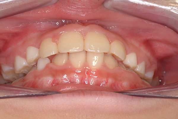 over jet -2.5mm、over bite 2.0mm、大臼歯関係はⅠ級 。Hellmanのdental ageはⅡCであり前歯部は反対咬合を呈していた。 |