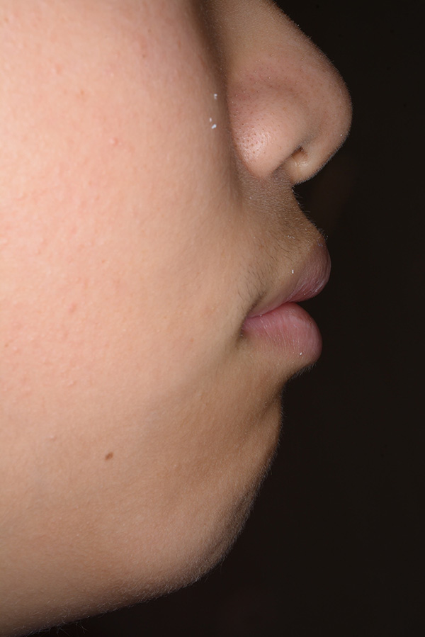 | 顔貌所見 | 正貌はほぼ左右対称。側貌はconvex type、口唇閉鎖不全、口元の突出感が認められた。 |