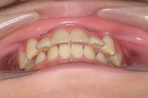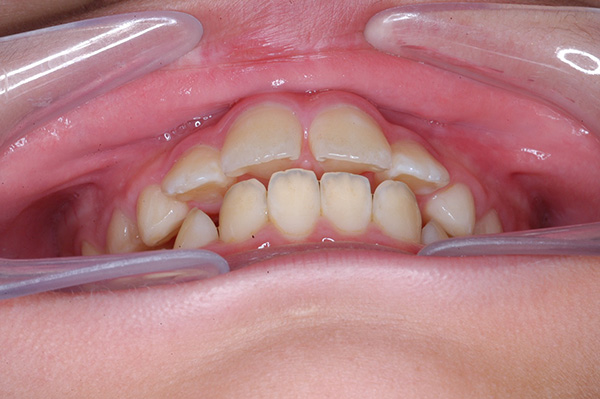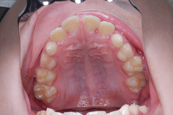 | 口腔内所見 | over jet 5.5mm,over bite 5.0mm,大臼歯関係はⅠ級 、Hellmanのdental ageはⅢBであり上突歯列を呈していた。 |