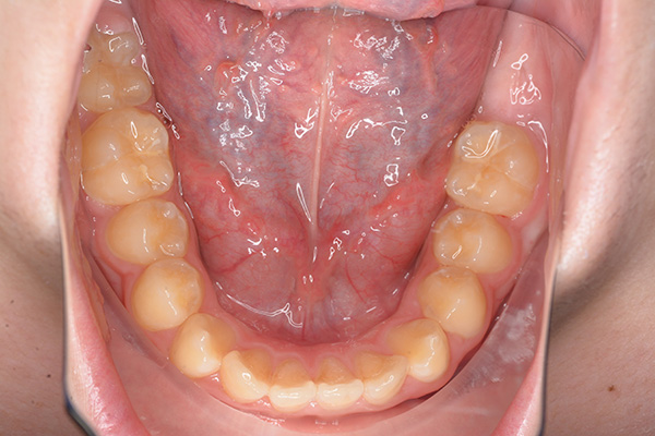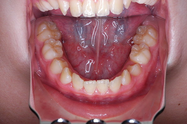 | セファロ所見 | Sellaに対して下顎頭は後方位だが下顎骨は大きくしっかりとした形態をしており前後的にはⅠ級、垂直的にはロウアングルの骨格形態をしていた。 上顎前歯は唇側傾斜を呈していた。 |