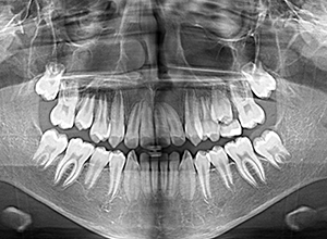 | パノラマ所見 | 上顎左右側犬歯は近心傾斜し側切歯歯根に重なるように認められた。 |