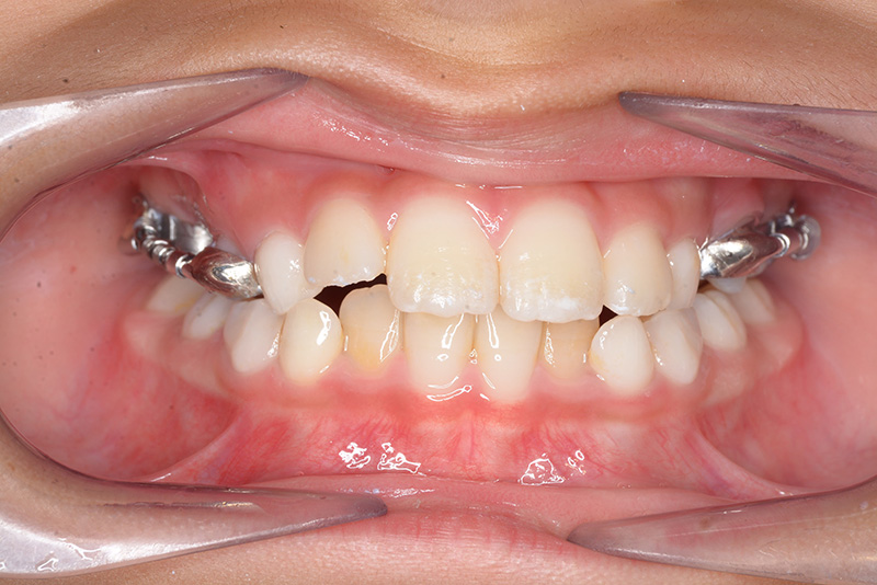 | 初診時年齢 | 8歳9ヵ月 | 性別 | 女 | 動的治療期間 | 4ヵ月 | ||