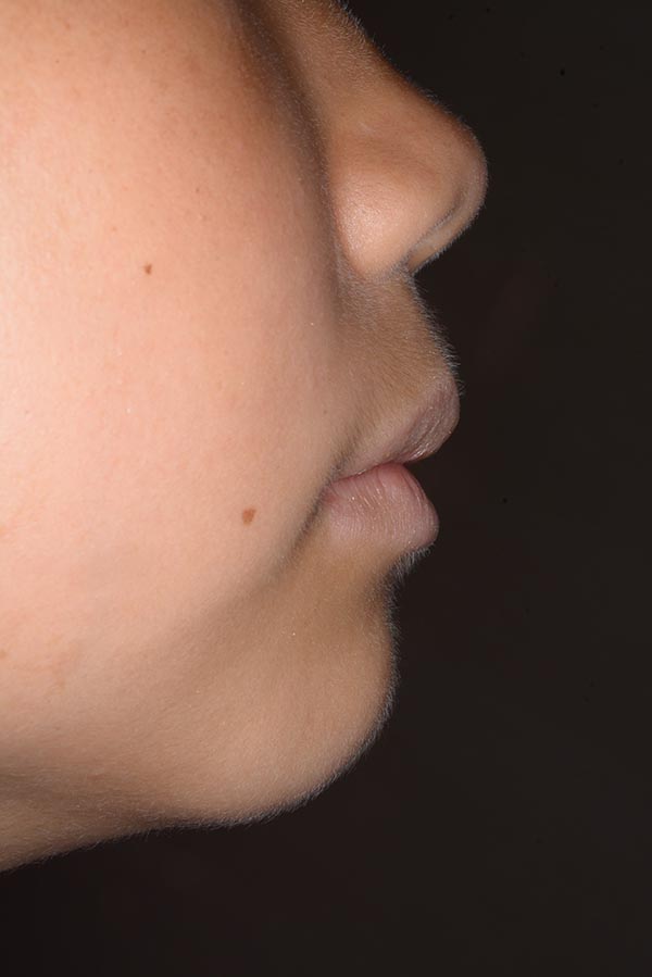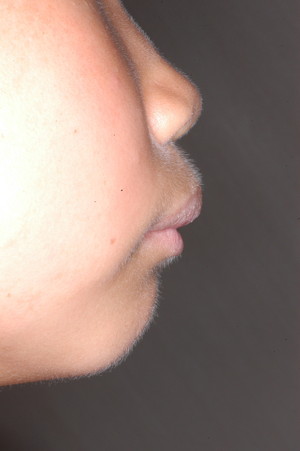 上唇の突出が著しく閉唇時には口腔周囲筋の緊張感が認められ、安寧時には上顎前歯が露出し下唇はその内側に入っており口唇間隙も大きくなっていた。 |
