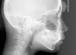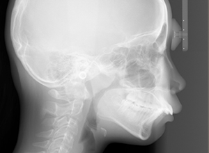 下顎骨はしっかりとしているが顎顔面の奥行きに比べて下顔面高さが低い。頭蓋に対して上顎骨は前方位にあり、上下顎骨の前後的位置関係のズレは大きかった。 |