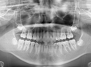 上顎前歯舌側移動により上口唇形態は改善したこと、また動的治療中の下顎骨、特に下顎枝の成長が認められ下顔面高さは高くなったことが相俟って良好なプロファイルは得られたと思う。咬合の緊密化や歯根のパラレリングは行えたように思う。今後は第三大臼歯の萌出方向に注意を払い、頃合いを見計らって抜歯を検討している。 |